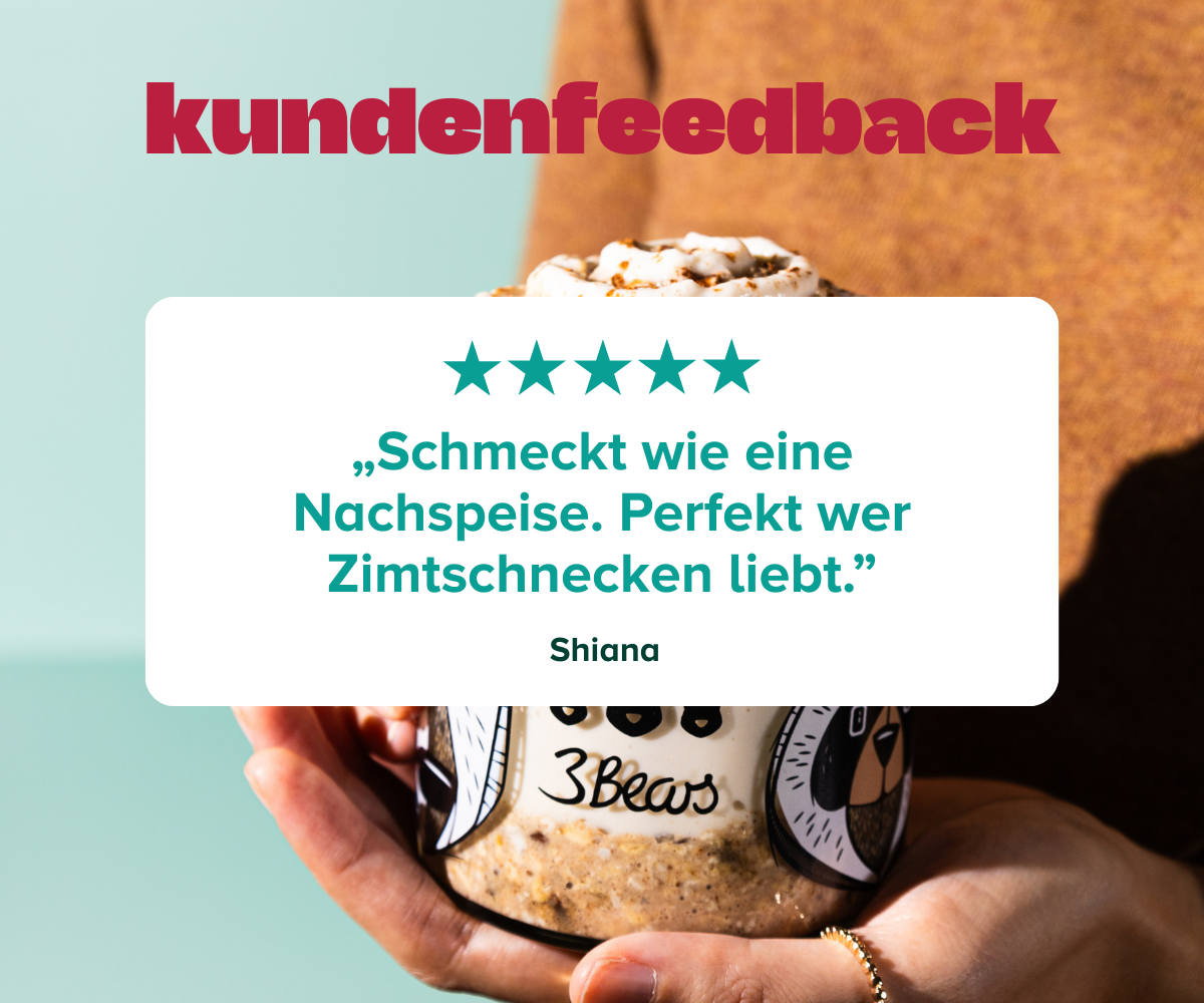 Wir sind Caro und Tim, ein deutsch-britisches Paar, und haben 2016 3Bears gegründet. Warum? Weil wir zum Einen einfach richtig große Hafer-Fans sind und begeistert sind wie viel Gutes in Vollkorn-Hafer steckt. Zum Anderen wollten wir Hafer-Produkte machen, die dein Leben einfacher machen. Dir tolles Frühstück bieten, das unglaublich lecker und abwechslungsreich ist – dabei easy in der Zubereitung und so natürlich wie nur möglich. Wir verzichten komplett auf Industriezucker und Aromen, packen getrocknete Früchte in unsere Mischungen und überlegen uns immer wieder in unserer Experimentier-Küche neueste Sorten. Alles bei uns ist 100% pflanzlich und 100% lecker. Probier's aus und werde Teil unserer Community. Join the Morning Oats Club!