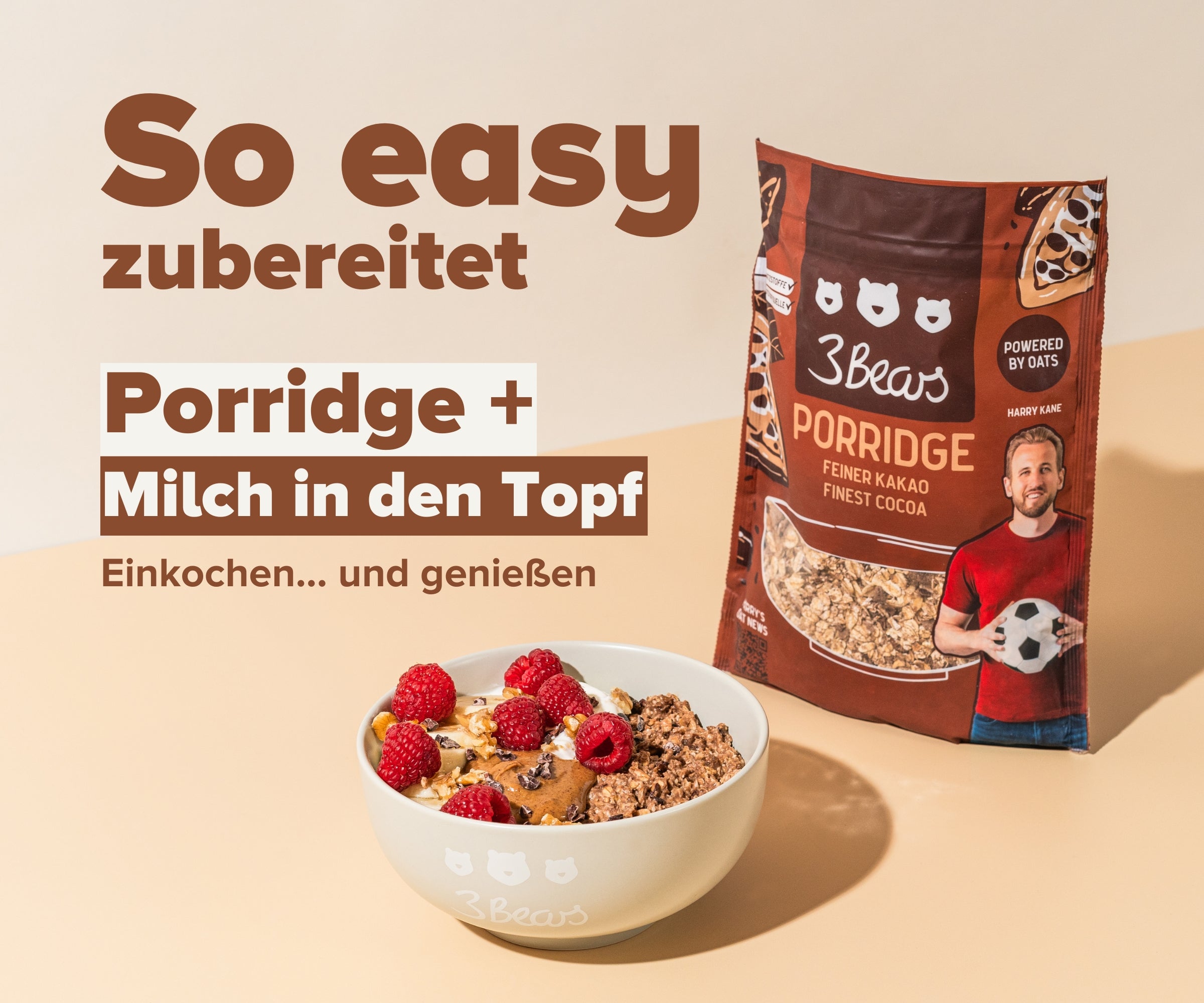 Wir sind Caro und Tim, ein deutsch-britisches Paar, und haben 2016 3Bears gegründet. Warum? Weil wir zum Einen einfach richtig große Hafer-Fans sind und begeistert sind wie viel Gutes in Vollkorn-Hafer steckt. Zum Anderen wollten wir Hafer-Produkte machen, die dein Leben einfacher machen. Dir tolles Frühstück bieten, das unglaublich lecker und abwechslungsreich ist – dabei easy in der Zubereitung und so natürlich wie nur möglich. Wir verzichten komplett auf Industriezucker und Aromen, packen getrocknete Früchte in unsere Mischungen und überlegen uns immer wieder in unserer Experimentier-Küche neueste Sorten. Alles bei uns ist 100% pflanzlich und 100% lecker. Probier's aus und werde Teil unserer Community. Join the Morning Oats Club!
