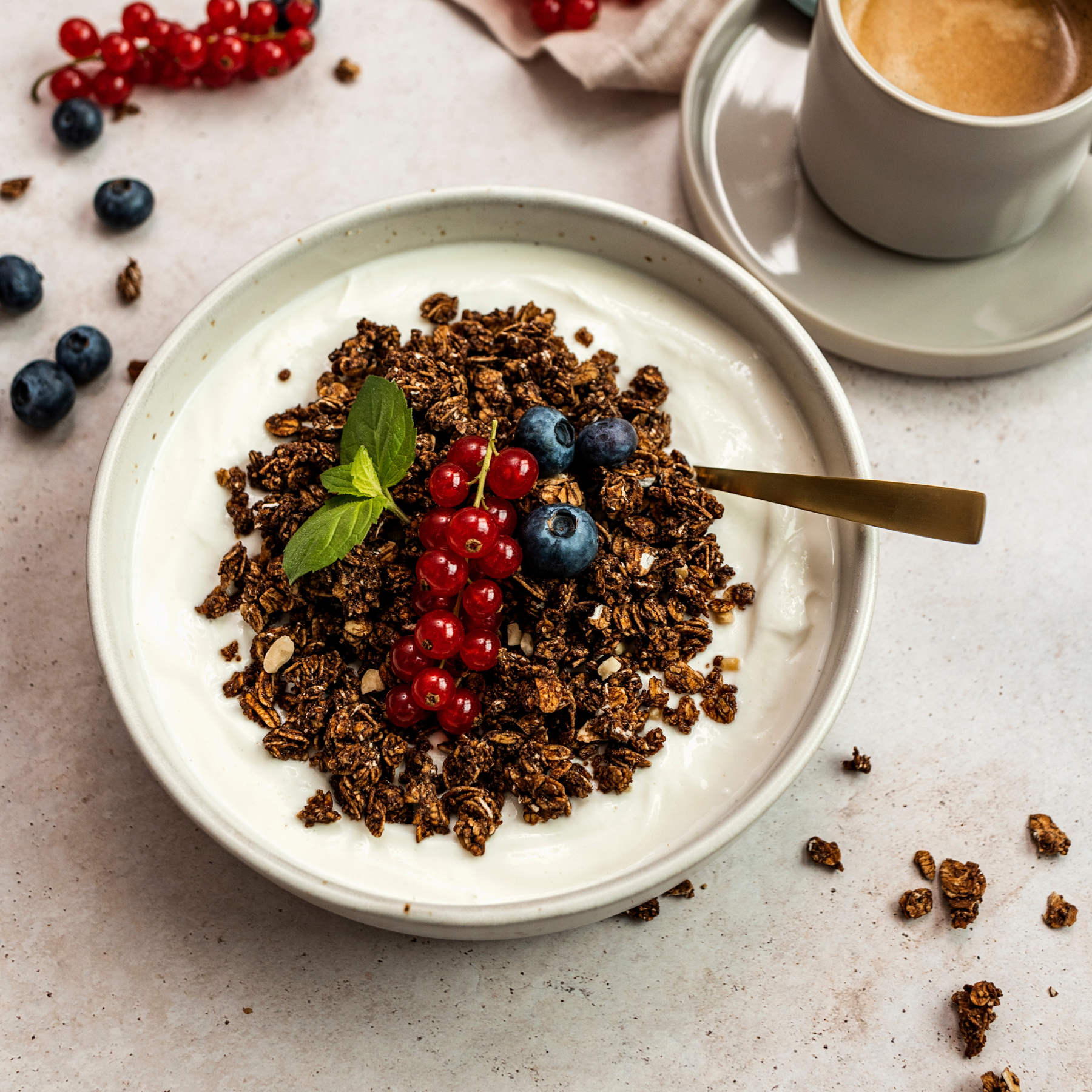 Granola is a crunchy and nutritious muesli mix with toasted oat flakes as a base. It is a tasty breakfast or snack that is rich in fiber and protein. Often served with yogurt, milk or plant-based drinks, granola offers a delicious crunch and sweetness.