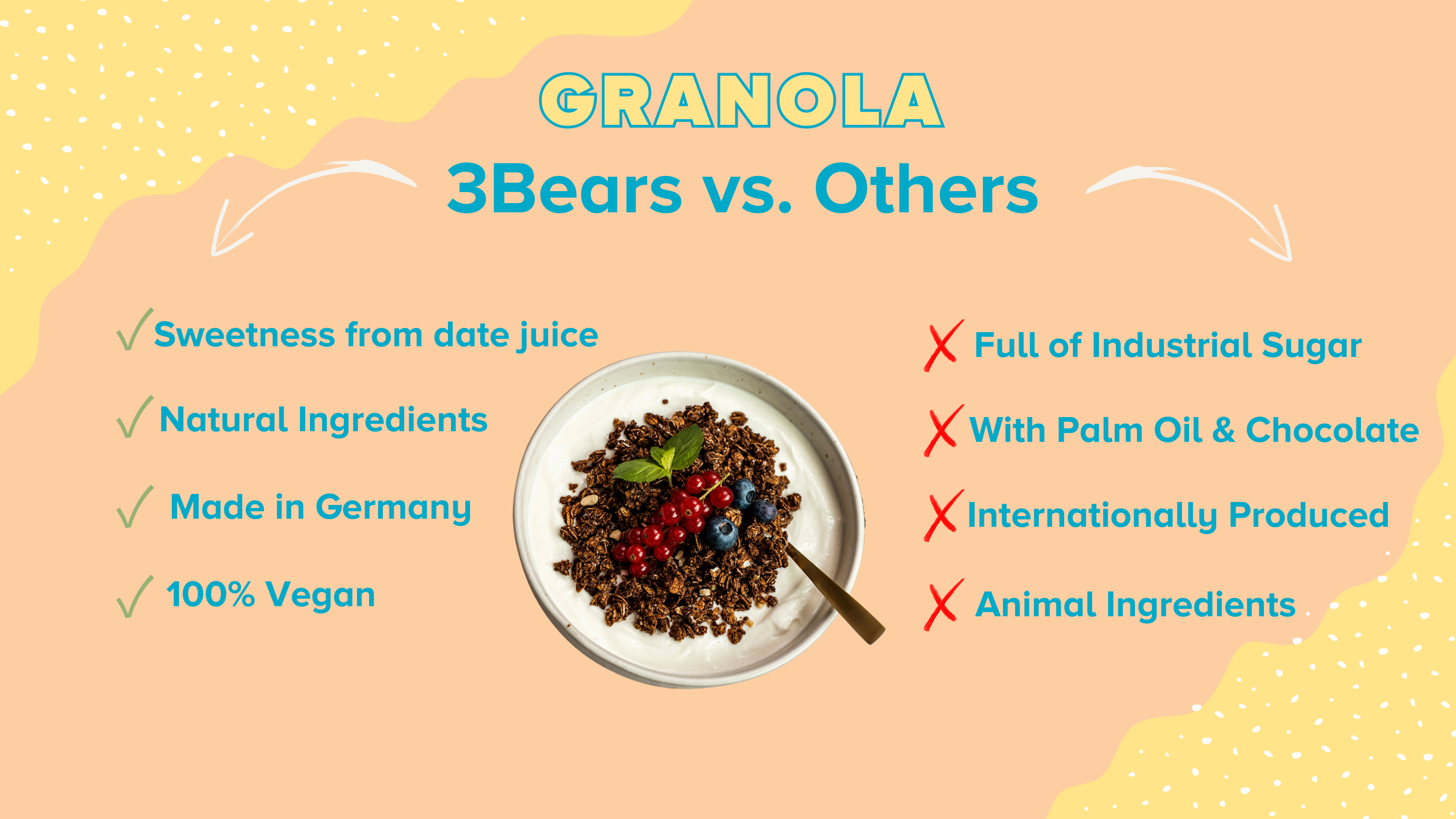 In the past I have often worked with 3Bears on collaborations. 3Bears shares my passion for high-quality food that is not only delicious, but also wholesome. That's why I was so excited about the idea of developing a granola that combines exactly these two components - it's made entirely without industrial sugar and tastes like it was homemade!