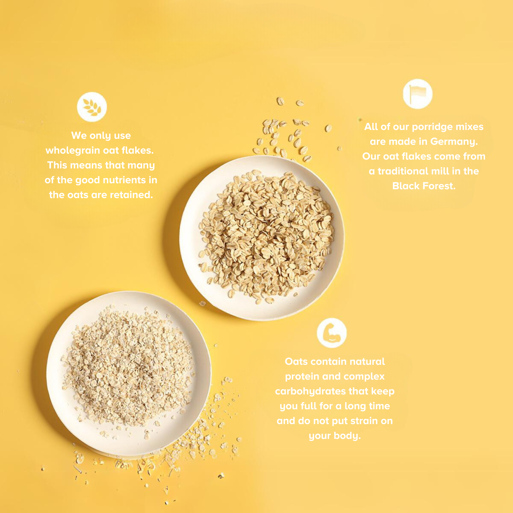 So that you and your baby benefit from the benefits of oats, you should value high-quality ingredients - like we do with our porridge . Can you eat oatmeal with water? And how exactly does it work with overnight oats? We have summarised everything you need to know about making porridge in a large overview for you.