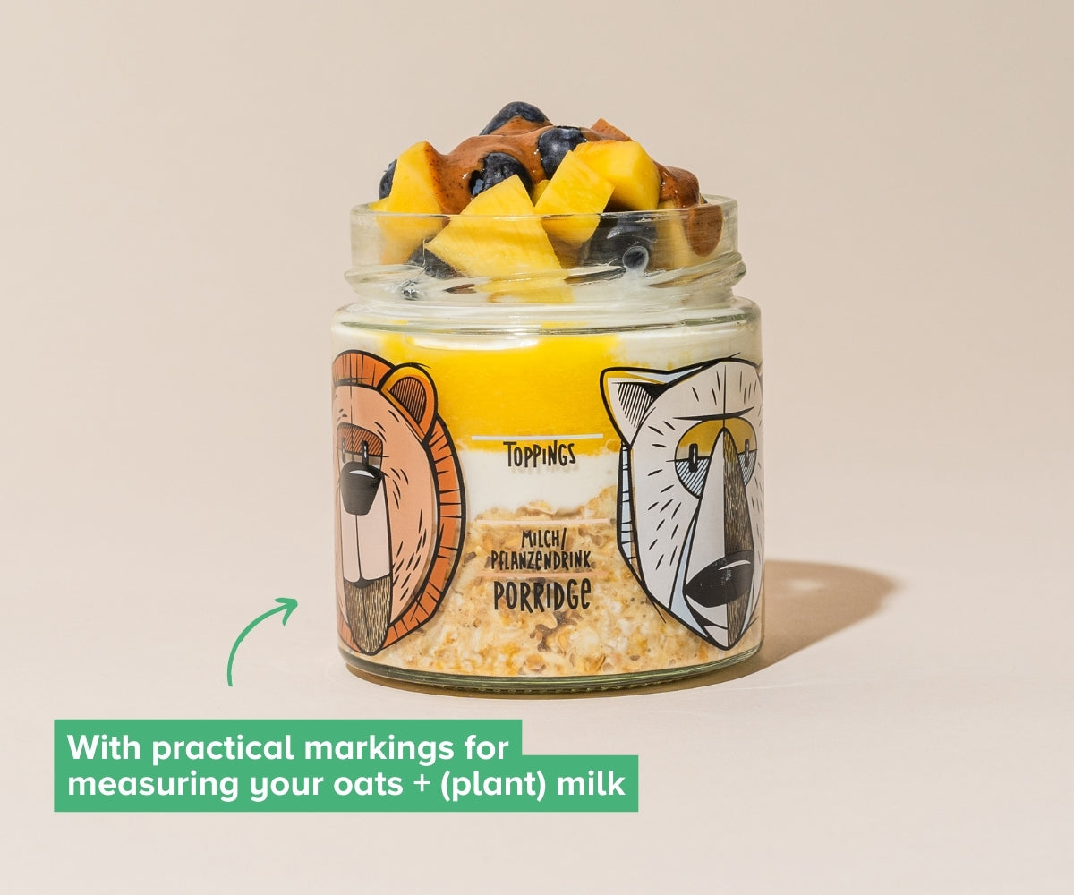 We founded 3Bears in 2016 because we were frustrated with how much sugar was in so many foods. We brought porridge to Germany because we think it's the perfect basis for a wholesome breakfast. You can now get pretty much everything to do with oats from us: overnight oats, bars, granola and accessories. And you can trust us to always stick to our principles. Our products contain no industrial sugar, no additives, they are always 100% plant-based and sustainability is deeply rooted in us.