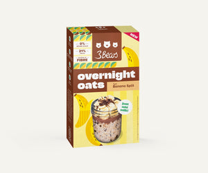Craving the indulgence of a classic Banana Split? Our Banana Split Overnight Oats offer all the deliciousness, but in a healthier, more wholesome form. Made with real banana and crunchy cocoa nibs, this creamy, naturally sweet breakfast is free from artificial additives, added sugar, and dates. Plus, it's 100% vegan! Enjoy the rich banana flavour combined with a satisfying cocoa crunch – the perfect way to start your day or enjoy as a guilt-free snack. Our Banana Split Overnight Oats are the best cold alternative to porridge, providing you with a convenient, nutritious option that’s ready to eat whenever you are.Ingredients & Nutritional Values